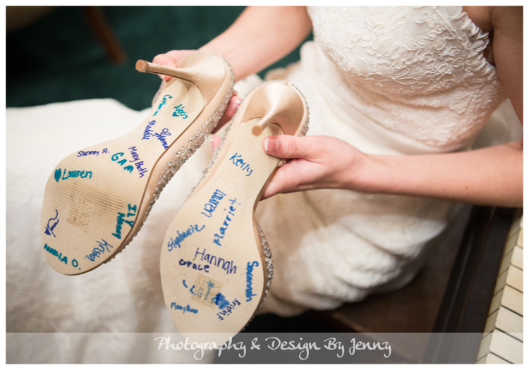 Ok Bridesmaids, here’s a chance to make your mark! Send your friend off with your signature or a sweet note. Superstition says, the first name to rub off is the next to get married! Here’s Myers’s wedding!