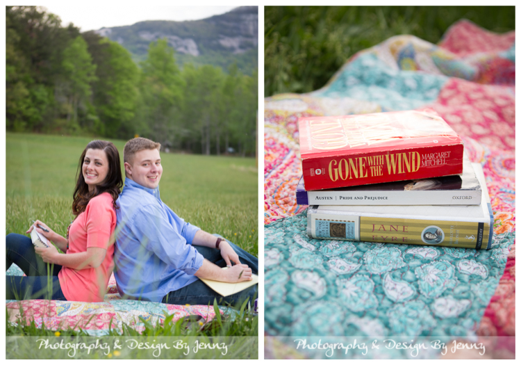 We brainstormed a lot for their session. From location to props to outfits. I really liked being hands on with each detail! We chose Poinsett Bridge to start and we finished at Table Rock State Park. Millie and Evan are avid readers so they brought along their favorite books.