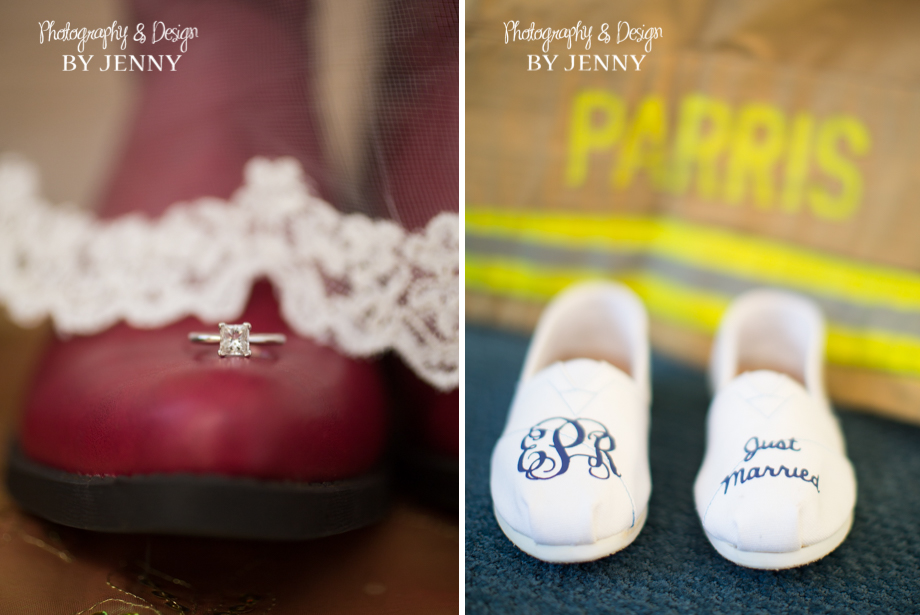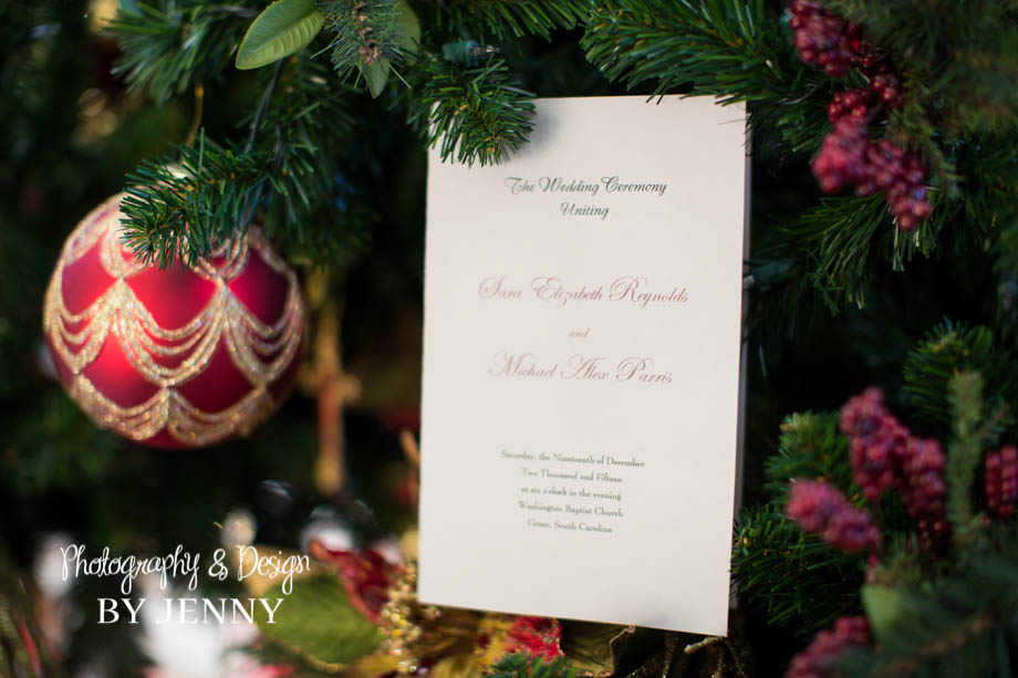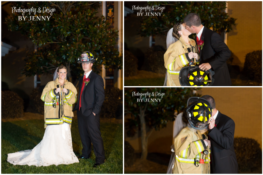 Alex and Elizabeth were married December 19th at Washington Baptist Church in Greer, SC. The excitement was buzzing around the church as the Christmas lights twinkled and the final touches were made. Alex’s fire department turnout gear added a personal touch to our detail shots. At 6pm, surrounded by family and friends, Elizabeth’s Daddy walked her down the isle to Alex. Make sure you see Alex’s reaction of when he first caught a glimpse of his gorgeous bride! We celebrated their marriage at a rustic venue, Pacific Place in Lyman, SC. I love the way Alex looked at Elizabeth and pulled her close when it got chilly during our outside pictures! Their love is adorable! I’m so honored to share their wedding with you!